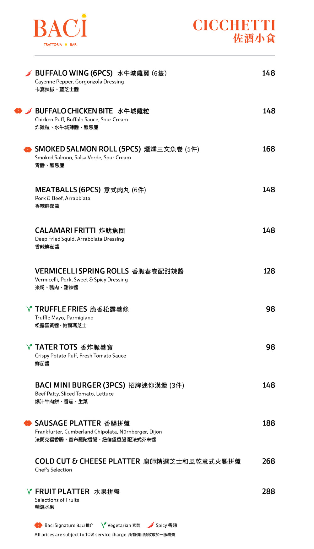 Casual and convivial, BACI (Italian for kisses) is a slice of magic that delights with a cosy and relaxed atmosphere centred around Italian comfort food. Ranked as the Top 2 of all HK pizzerias for four consecutive years, BACI is famed for its superb quality of pizza dough and ingredients. From pizza to pasta – with a drink in between – we pay homage to the ingredients and honest flavours of Italy. As an all-day trattoria and bar conveniently located in the heart of Lan Kwai Fong, bring your friends, family, date or simply go enjoy a drink at the bar alone, it all works.
