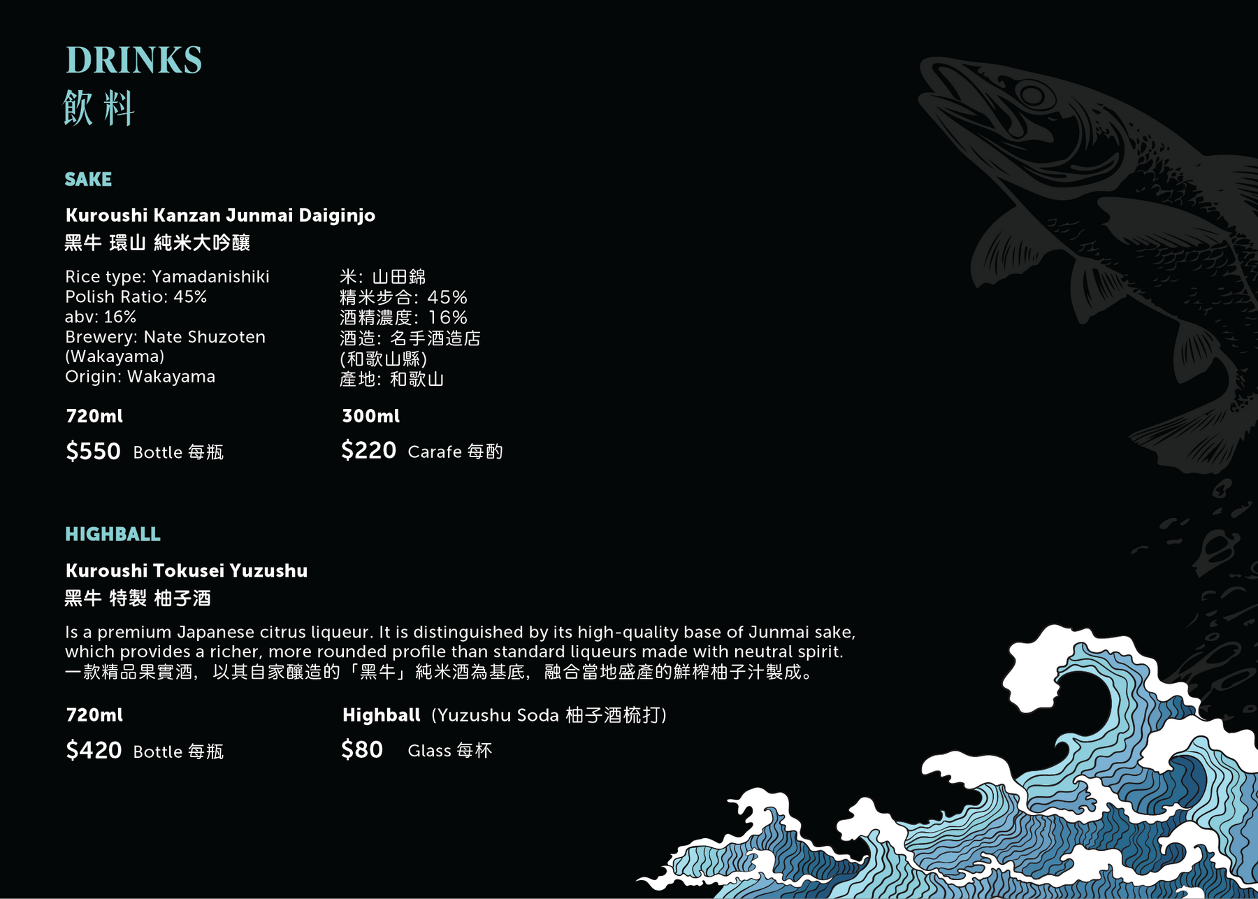 All prices subject to 10% service charge.